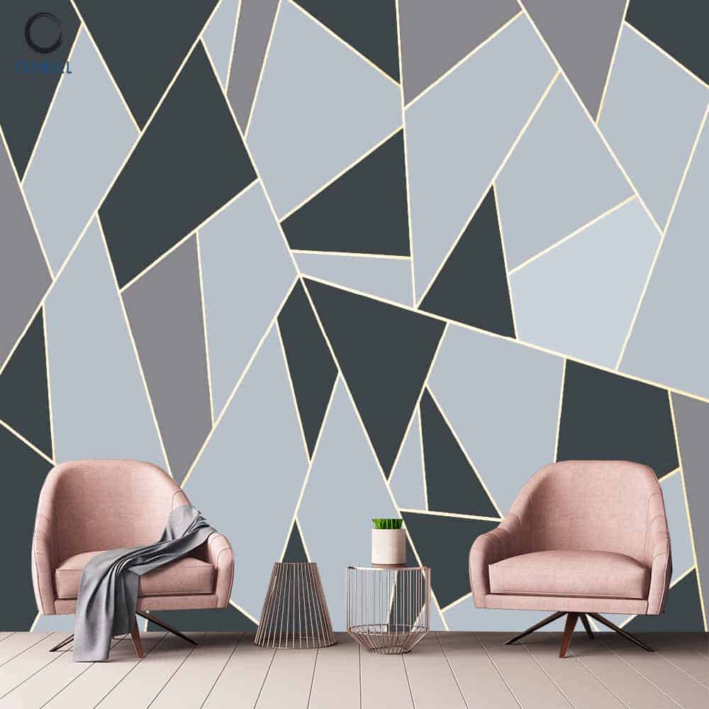 טפט תמונה של משולשים וצורות גאומטריות יוצרים את המראה הקלאסי שלא נס לחו ומתאים לחיפוי קירות גדולים לשדרוג כל סגנון עיצובי.