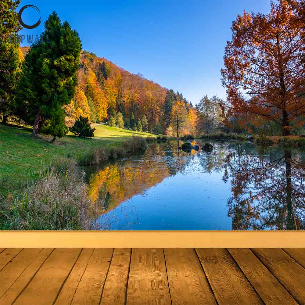 טפט אגם בשוויץ המתאר נוף בשוויץ עם נהר רגוע העובר בין גבעות עצים ירוקים וטבע פתוח.