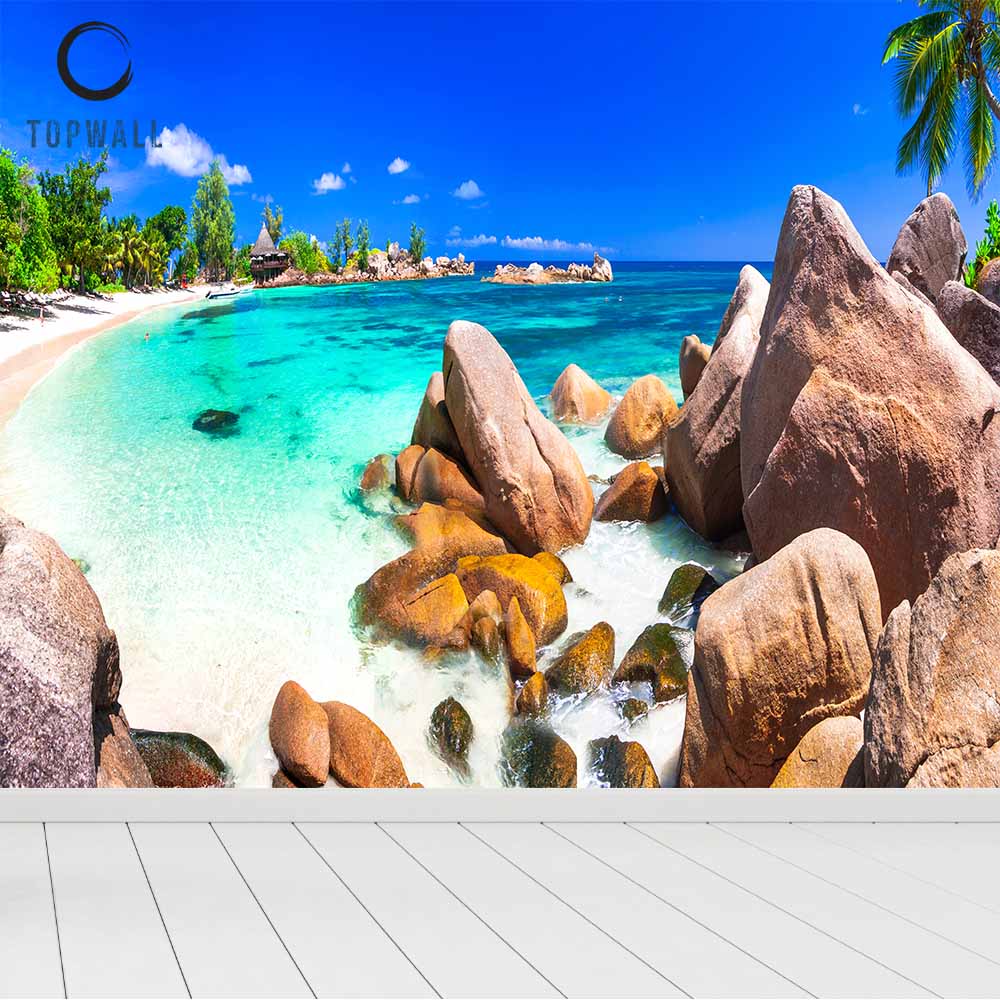 טפט חוף ים בשילוב סלעים במראה מדהים שישנה כל חלל.