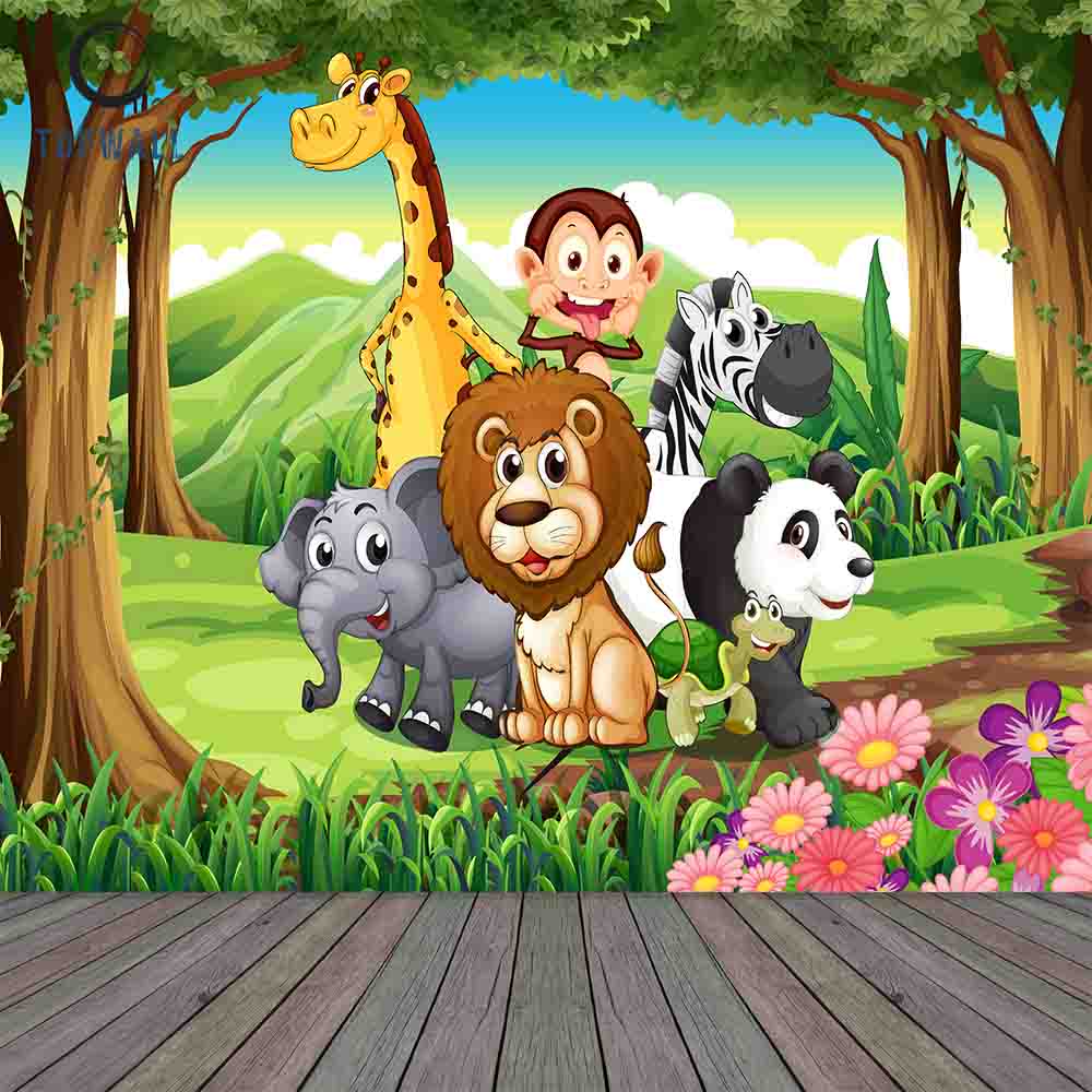 טפט חיות צבעוניות בין העצים הוא טפט יפה וצבעוני שמציג את החיות המדהימות של הטבע: פנדה, קופיקו, זברה, ג’ירפה, פיל ואריה.