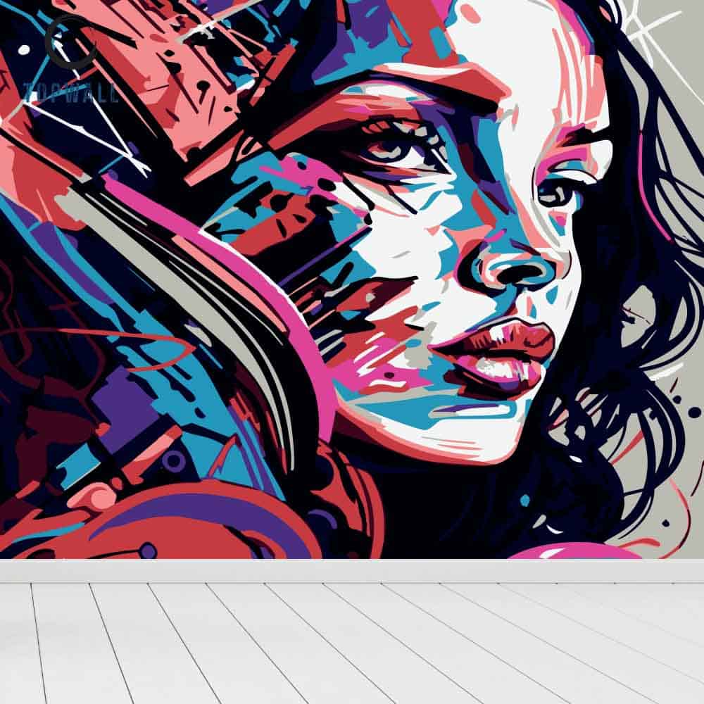 טפט פני נערה בצבעים זו יצירת אומנות אמיתית, עם צבעים המוסיפים עומק ומימד לתמונה.