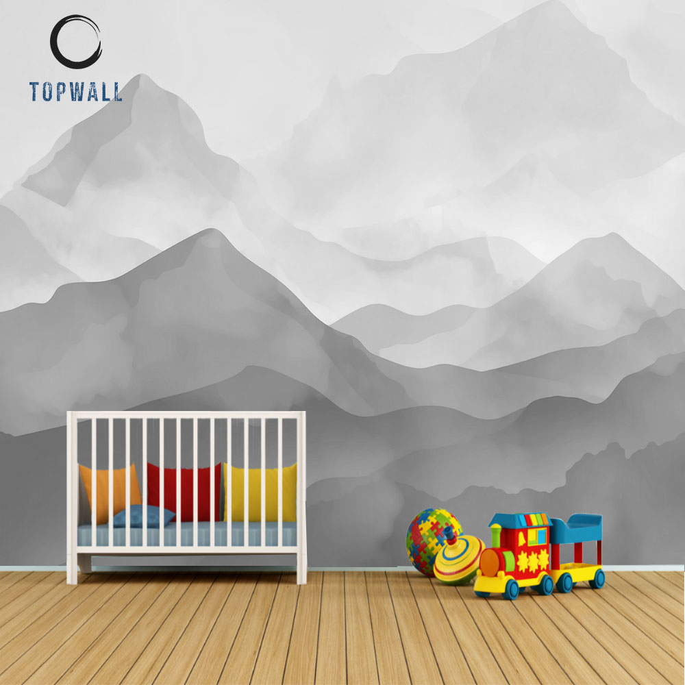 הטפט מציג ציור של הרים בגווני מים רכים, משתלבים באופן מושלם עם כל עיצוב.