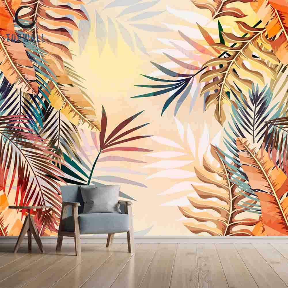 טפט עלי דקל צבעונים מהמם ביופיו, המציג עלי דקל בצבעים שונים בגווני ירוק, כתום צהוב ועוד צבעים מרגיעים.