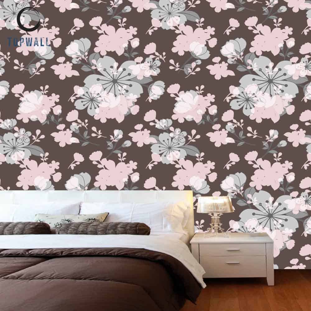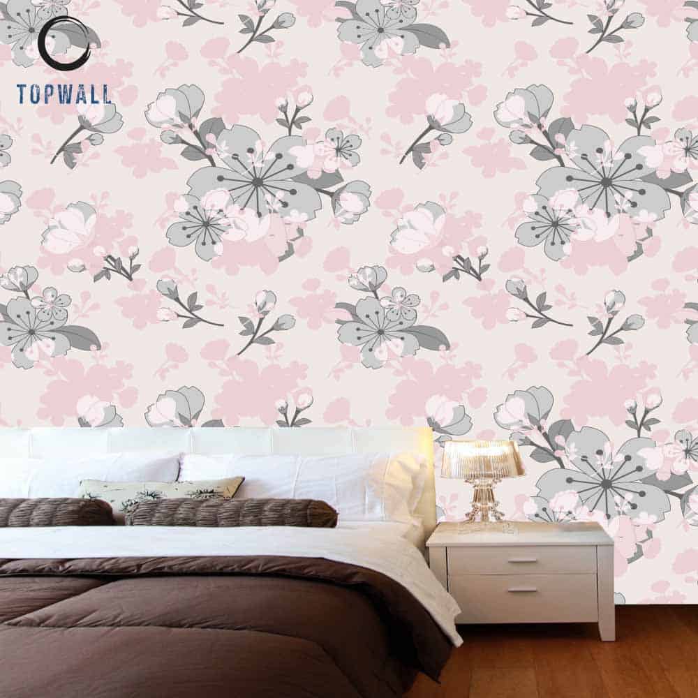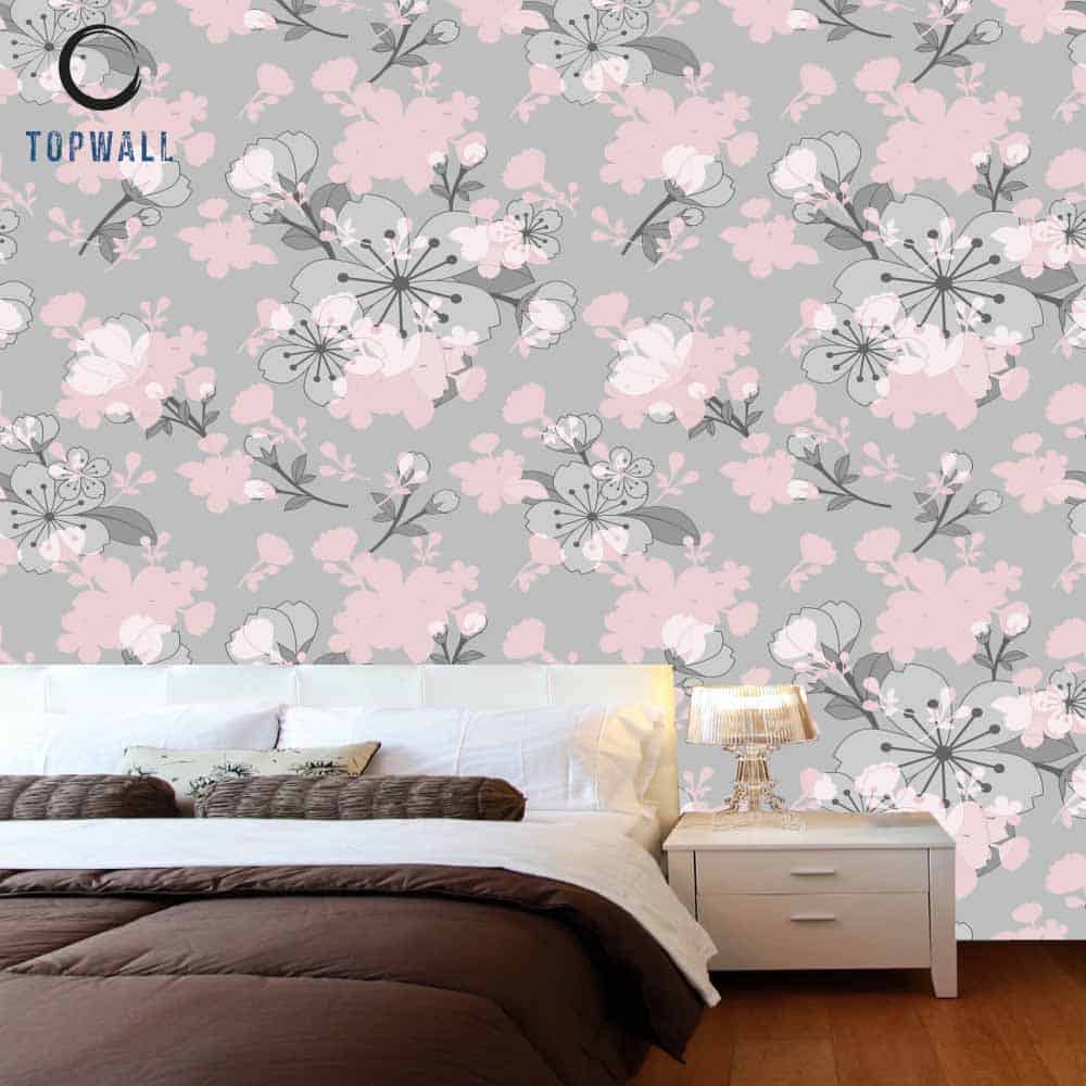 טפט פרחים ורודים בשילוב גווני אפור יוצר אווירה רכה ומתוחכמת בחדר השינה.
