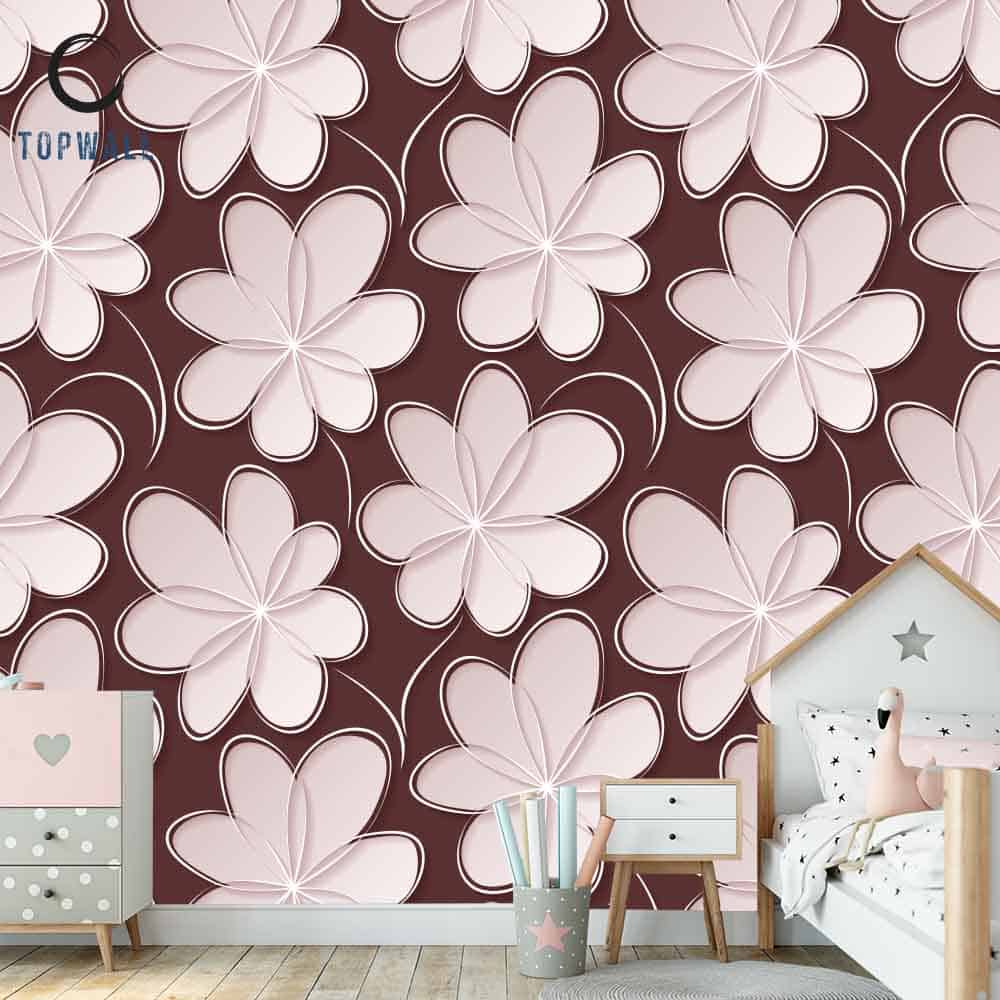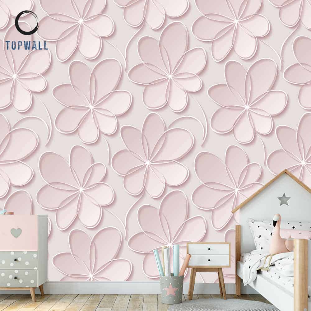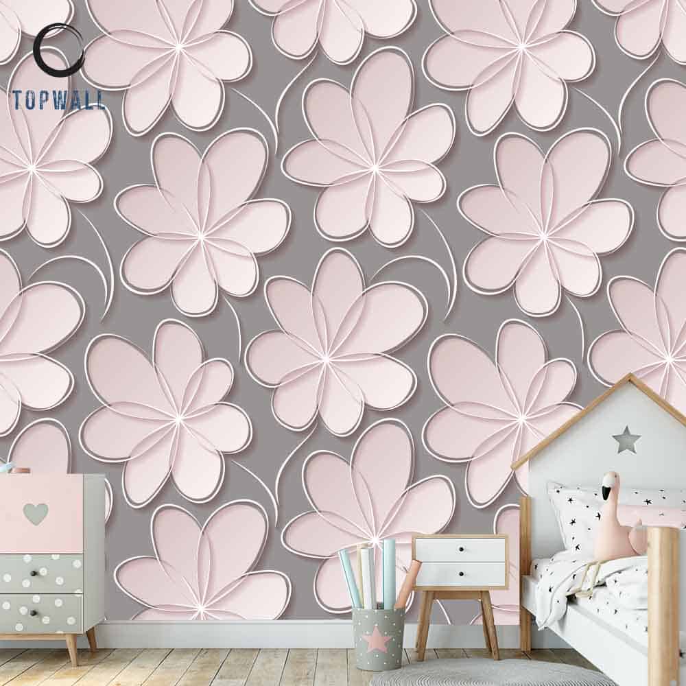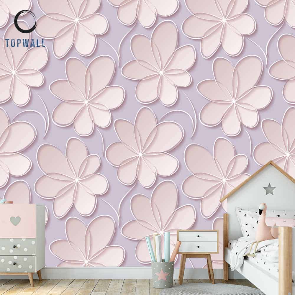 טפט פרחים ורודים על רקעים שונים במראה תלת מימד נותן תחושה של טבע ועדינות לחלל החדר.