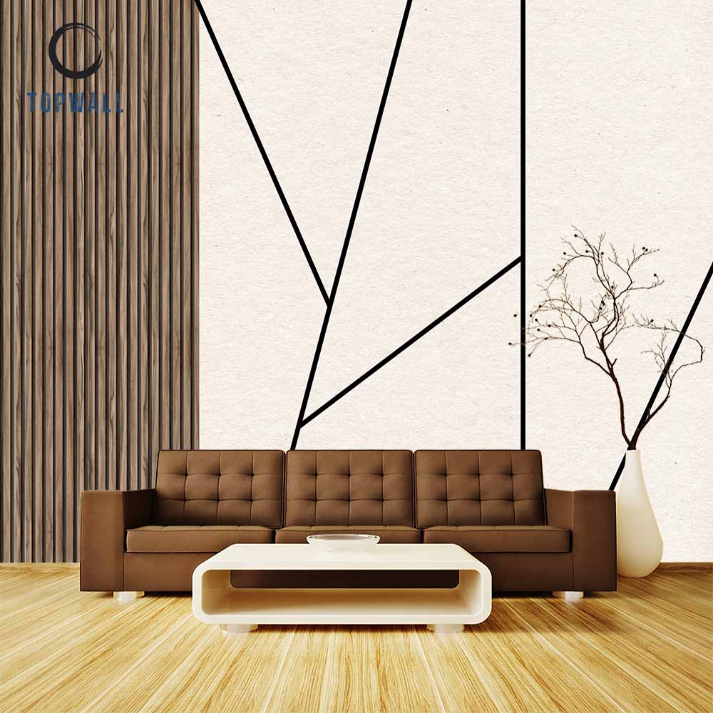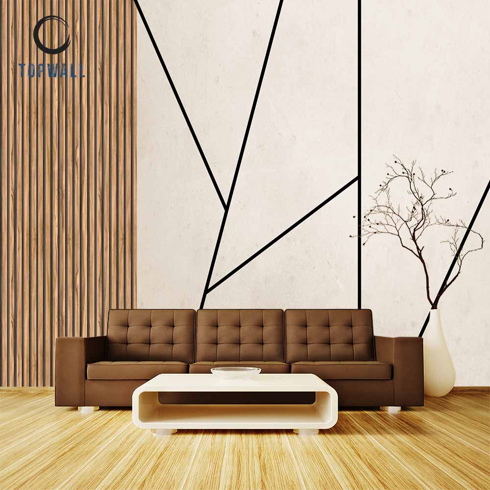 טפט צורות גאומטריות על רקע קרם בשילוב עץ במראה מדהים שמוסיף המון יופי לכל חלל.